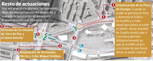 Comienza la reurbanización del entorno de Vara de Rey y los primeros efectos se notarán en la calle Pino y Amorena. La obra completa tiene muchas actuaciones, que se organizarán en cuatro fases distintas que se espera que duren veinte meses, pero la primera será la construcción de la rotonda prevista entre Pino y Amorena y Belchite y que tiene un plazo de dos meses, si bien, como habrá descanso navideño, se prolongará hasta febrero.